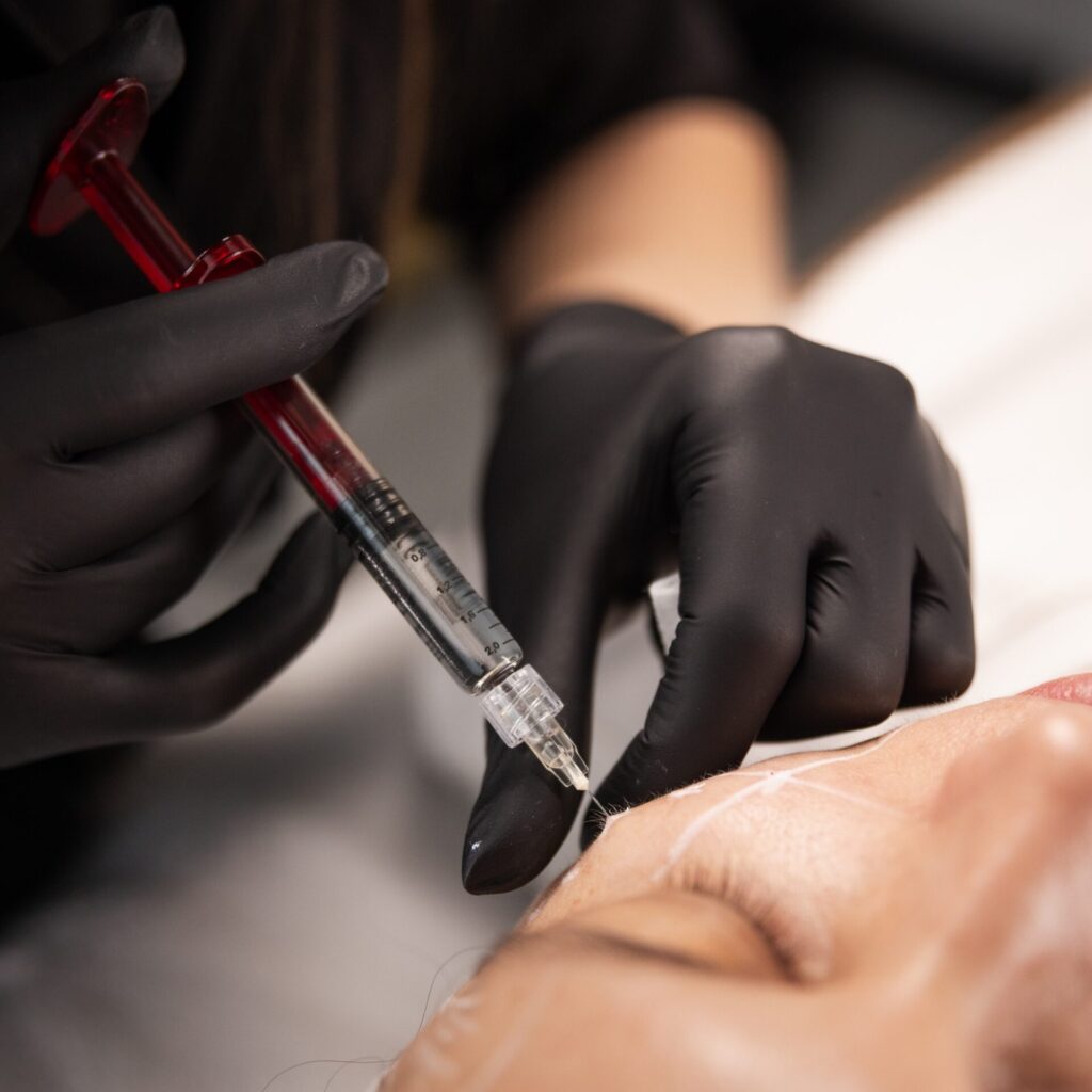 Efekt wypełnienia bez zastosowania wypełniacza? W Klinice SKINSPACE jest to możliwe. Fibryna strukturalna to zabieg będący doskonałą alternatywą dla tradycyjnych wypełniaczy, adresowany do osób, których oprócz wypełnienia interesuje efekt rewitalizacji skóry. Zabieg jest zalecany między innymi przy utracie jędrności, widocznych zmarszczkach i bruzdach, niezdrowym kolorycie czy utracie objętości w określonych częściach twarzy (policzki, okolica pod oczami, linie marionetki, czoło). Oprócz działania wypełniającego, zawarte w fibrynie strukturalnej czynniki wzrostu intensywnie regenerują skórę, stymulują syntezę kolagenu i elastyny oraz powodują widoczne odmłodzenie. Zabieg wskazany jest szczególnie u osób, które cenią sobie naturalność i bezpieczeństwo – preparat pochodzi z naszej własnej krwi, nie ma mowy więc o uczuleniu.
